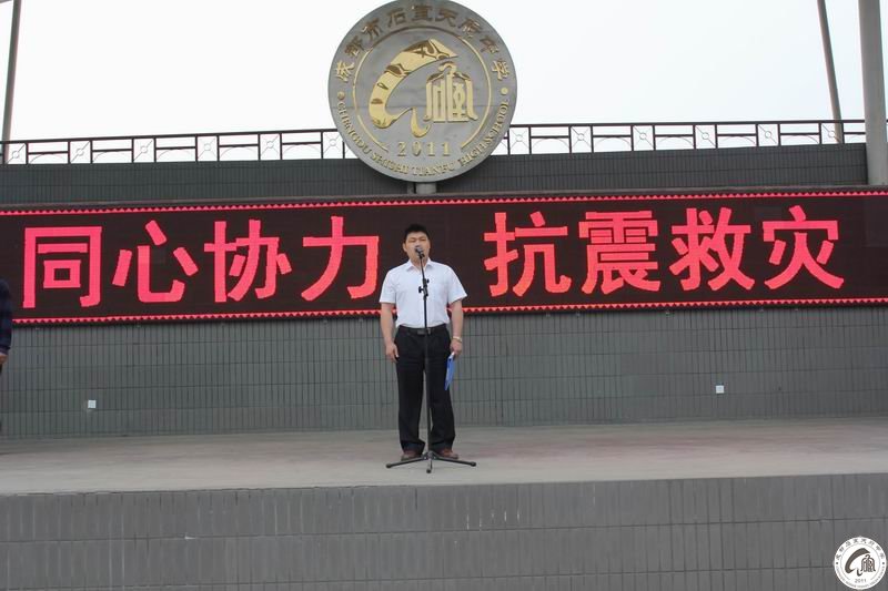 升旗仪式上,谌瑞华副校长首先带领大家举行默哀仪式,之后进行了题为《生命可贵·大爱无疆》的国旗下演讲。对灾区群众表示关心,也对全校师生再次强调面对地震时的应急措施:
