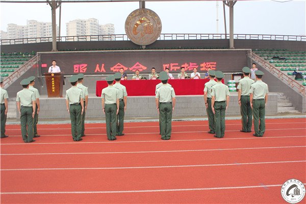 在军训教官代表发言后,武警警官学院军训营康懿参谋长作了军训动员。他要求军训教官严格训练,文明待人,注重培养军训学员的意志品质,高标准、高品质完成军训工作。