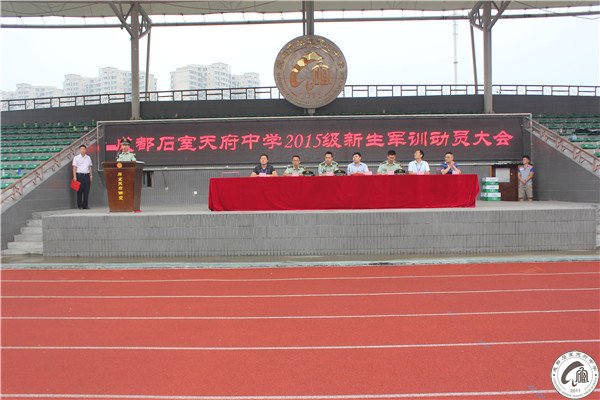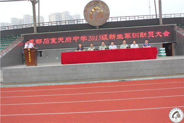 在大会上,我校副校长谌瑞华发表了讲话。他说,从今天起,同学们就正式成为了石室天府中学的一员,这里,就是你们新的家园,每一位同学都是天府新家的主人,为把我们共同的新家园建设得更加美好,需要我们每一位同学做出积极的努力,这努力的第一步,就从军训开始。同学们刚完成了前一个阶段的学业,踏上了一个新的台阶,全新的学习和生活环境必将给同学们带来新的挑战,那么,我们用什么去战胜前进道路上的困难呢?那就是坚韧不拔的毅力、敢于拼搏的勇气和团结协作的睿智,这些优秀的品质从哪里来?就从中学学习的第一课——军训中来。通过军训,同学们将在嘹亮的军歌、整齐的步伐中领悟到纪律的含义、规范的意义,领悟到生活的真谛、人生的价值,军训也必将成为同学们生命中不可磨灭的一段宝贵经历。所以,希望全体同学能够认真对待军训,抓住军训的宝贵机会,磨砺自己的意志品质,积极参训,克服困难,上好这重要的第一课。