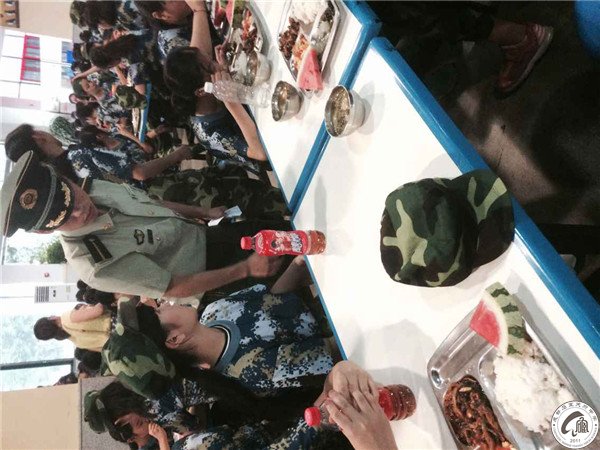 一天下来,把我们累坏了,夜幕降临,终于可以去食堂吃丰盛的晚餐了。亲爱的巫教官还主动来关心我们今天训练的情况,太贴心了。