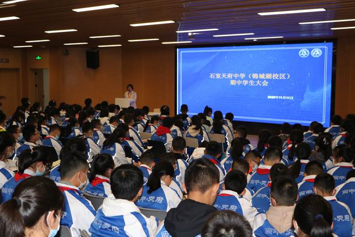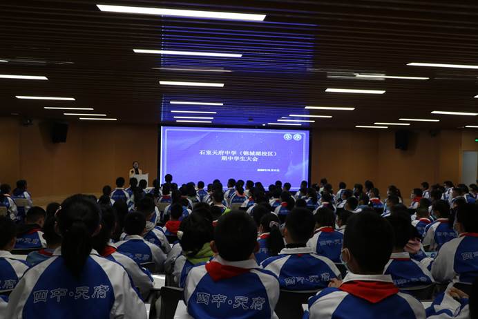 11月11日下午,四天学子们圆满完成为期两天的期中考试。离开考场后,同学们回到各自班级集合,在班主任老师的带领下,陆续走进了我校报告厅,参加一场特别的期中考试学生大会。会上,学生发展中心主任助理何银老师、质量管理中心赵元梅主任分别就学生常规管理和学情考情展开讲述,最后,权丽娜校长助理对本次大会进行了总结发言。