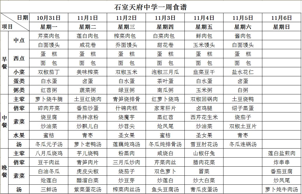 第十周【食堂】食谱